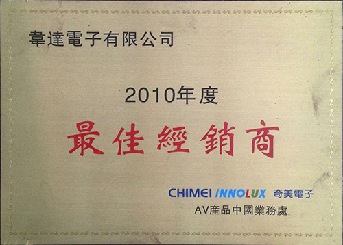 • 2010年度獲得最佳經(jīng)銷商獎(jiǎng)